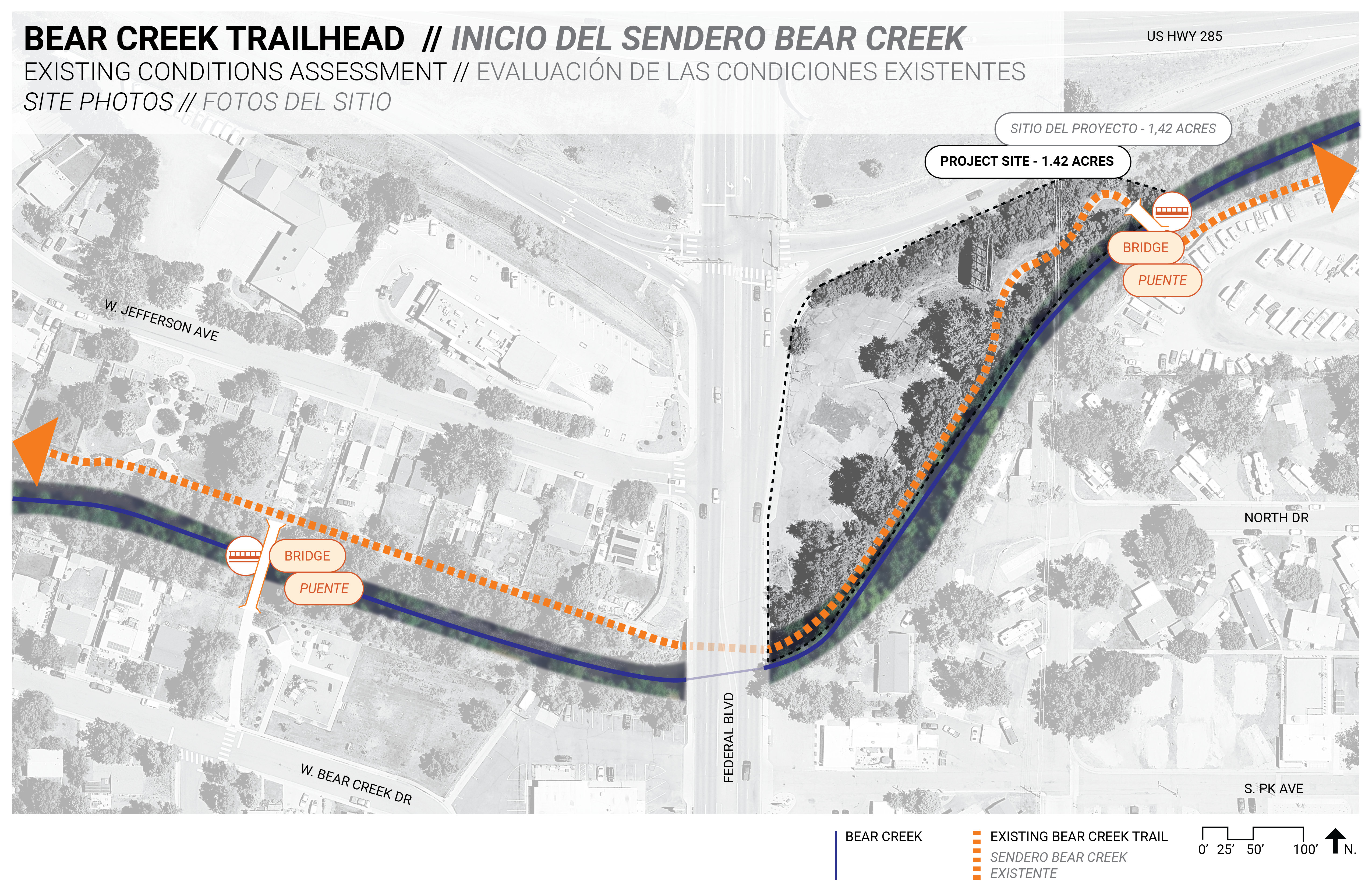 South Suburban, la Ciudad de Sheridan y sus socios del proyecto están colaborando para crear un nuevo acceso al sendero Bear Creek en 3600 S. Federal Boulevard. El terreno de 1.4 acres, adquirido a principios de 2024, se transformará en un espacio comunitario abierto con mejor acceso al sendero, realineación del puente y nuevas comodidades en el acceso.