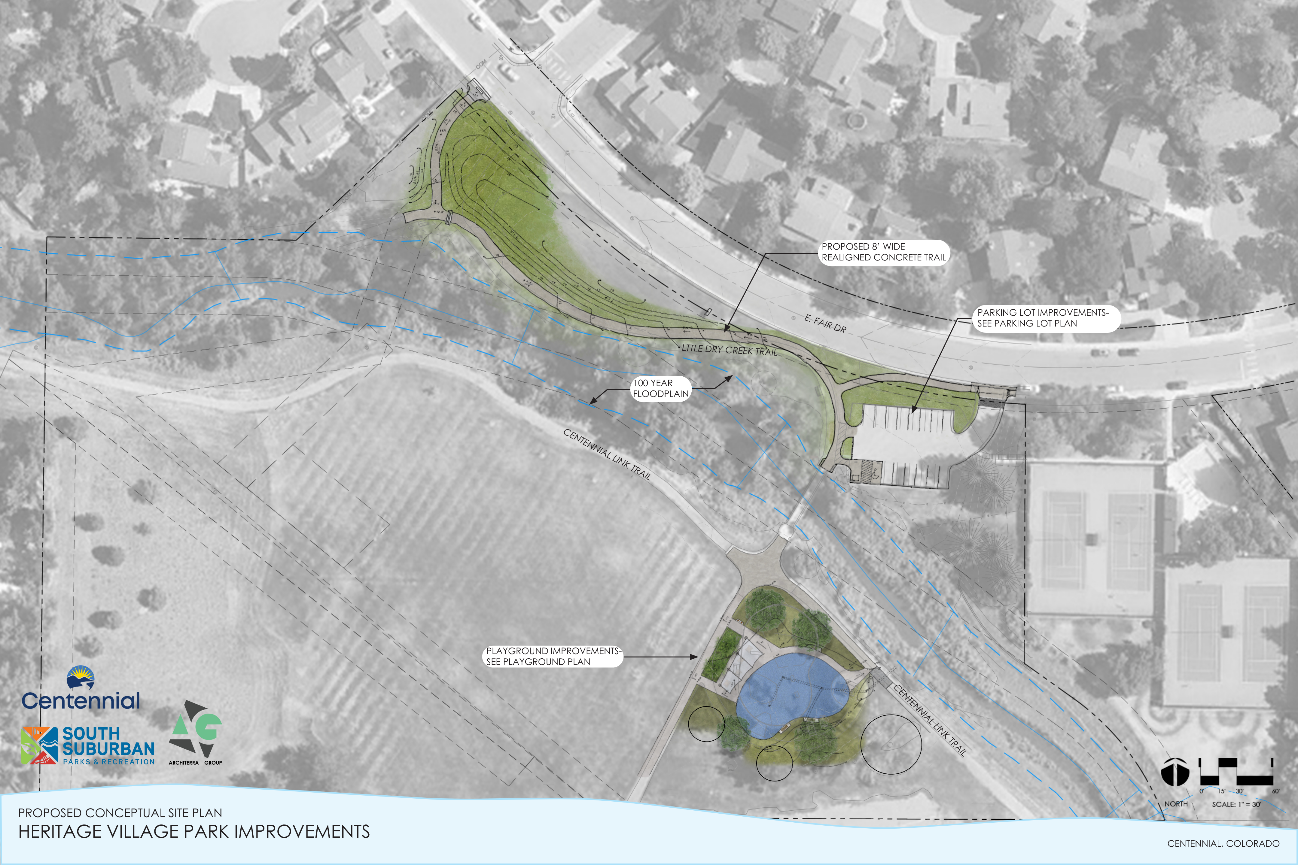 South Suburban is planning updates for Heritage Village Park. The proposed improvements include: