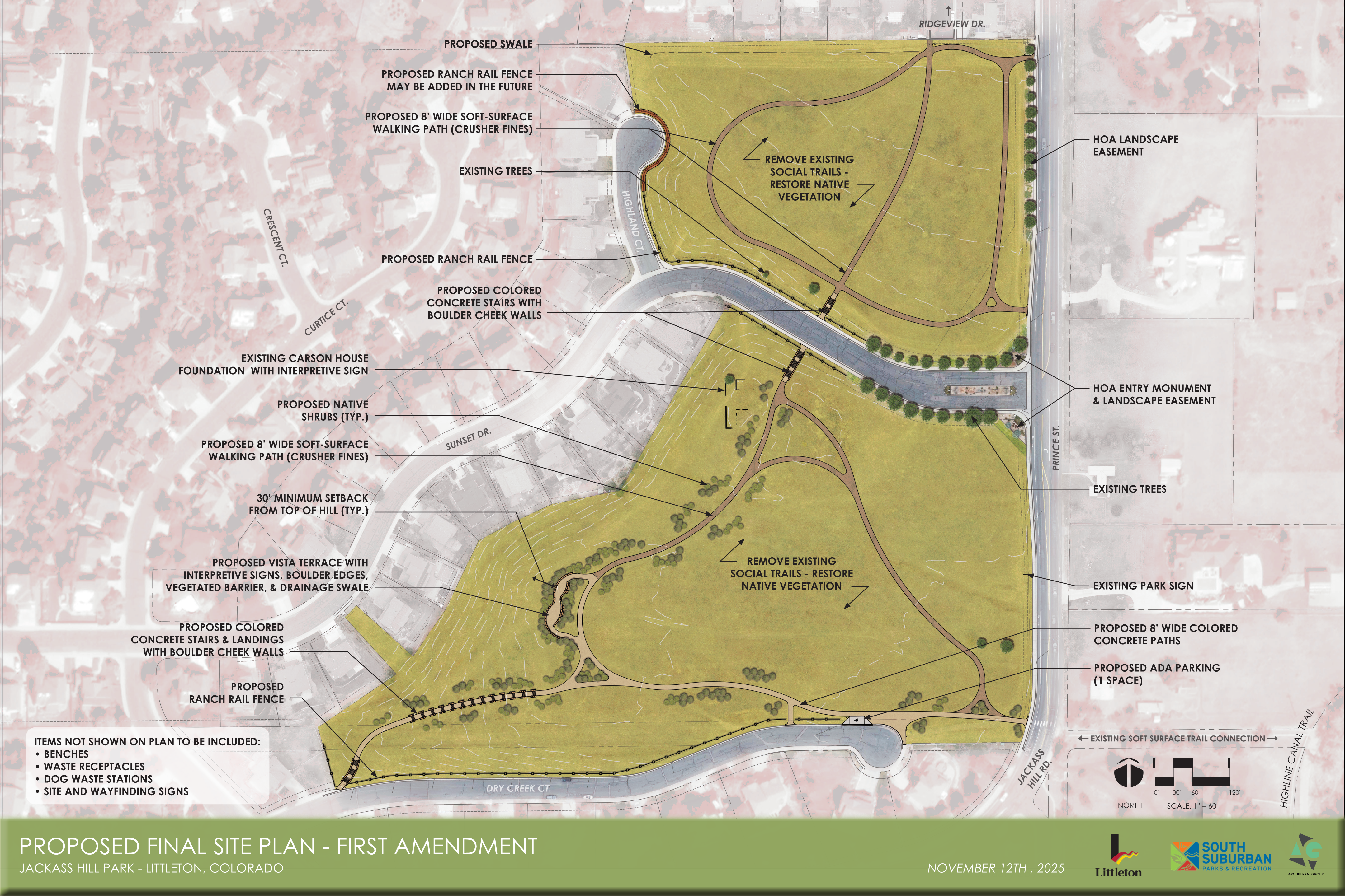 Share Jackass Hill Park Final Site Plan, First Amendment on Facebook Share Jackass Hill Park Final Site Plan, First Amendment on Twitter Share Jackass Hill Park Final Site Plan, First Amendment on Linkedin Email Jackass Hill Park Final Site Plan, First Amendment linkThe Board of Directors approved the Final Site Plan, First Amendment during its November 12, 2025 business meeting. Next steps include submitting a grant modification request to Arapahoe County Open Spaces (ACOS) and finalizing the construction drawings required to complete the City of Littleton’s development approval process.