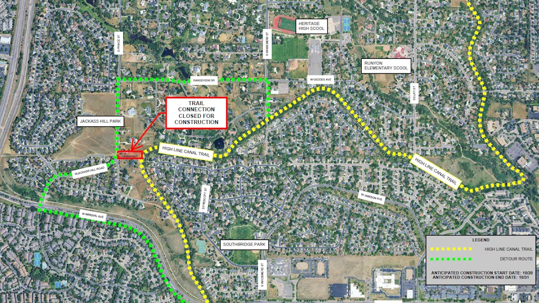Construction is moving forward at the Prince Street Trail Connection, which links trail users from Jackass Hill Park to the High Line Canal. Work is expected to take place October 27 through mid-November.