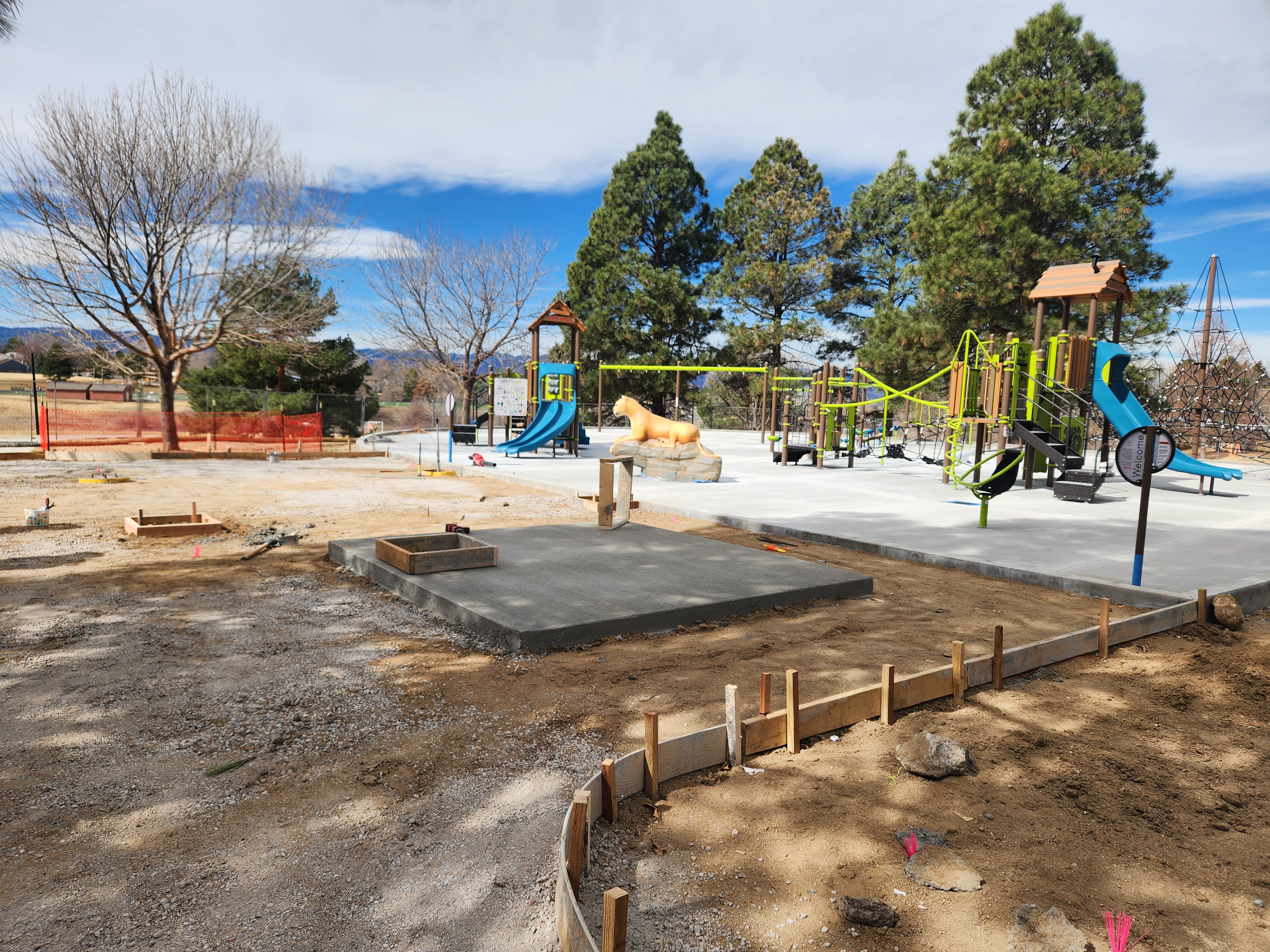 Share Construction Update on Facebook Share Construction Update on Twitter Share Construction Update on Linkedin Email Construction Update linkThe contractor installed shade structure footings and concrete flatwork for the plaza area. The artist will install the interactive public art piece on April 1. Staff are reviewing submittal documents for poured-in-place rubber surfacing which will be installed once approved and weather permits.