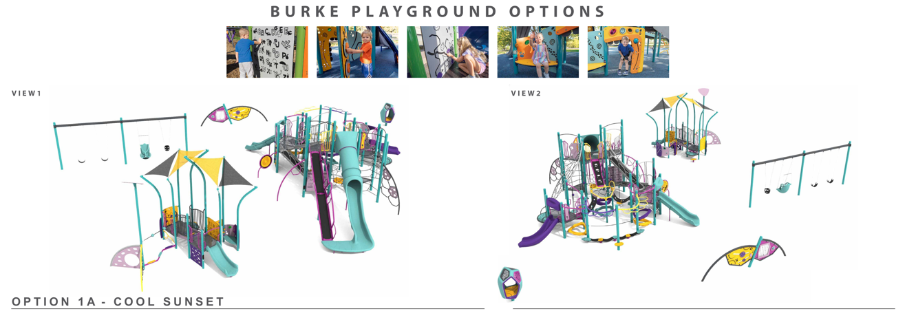 Share Online Public Input - Playground Selection Survey Results on Facebook Share Online Public Input - Playground Selection Survey Results on Twitter Share Online Public Input - Playground Selection Survey Results on Linkedin Email Online Public Input - Playground Selection Survey Results linkThank you to everyone who participated in the playground selection survey. The results are in, and Option 1A - Cool Sunset was the preferred choice with 21 out of 28 votes. Please see the results below, along with a conceptual image of the proposed playground. Please note that the final playground design may differ slightly from the concept shown.